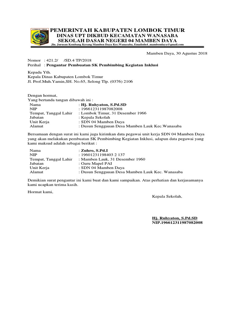 Contoh Surat Permohonan Tambah Ptk Baru Dapodik 2021 Info Pendidikan Terbaru from 1.bp.blogspot.com Surat pengantar bukan hanya untuk keperluan dalam dunia bisnis melainkan untuk berbagai aktivitas atau kegiatan yang membutuhkan izin. Untuk format surat pengantar ini ada yang membuat seperti surat dinas biasa dan ada juga yang dibuat dengan memberikan kolom. Pemerintah kabupaten kabupaten lombok timur dinas upt dikbud kecamatan wanasaba sekolah dasar negeri 04 mamben daya jln. Badan kepegawaian dan diklat hatam pdf download gratis. Pengertian surat pengantar adalah naskah dinas yang digunakan untuk mengantar/menyampaikan barang atau naskah. Yuk lihat contoh surat pengantar berikut! Surat ini bisa digunakan untuk keperluan dinas atau akademik pada instansi lain. Biasanya surat ini ditujukan untuk keperluan antara satu instansi ke instansi lainnya untuk tujuan tertentu.
